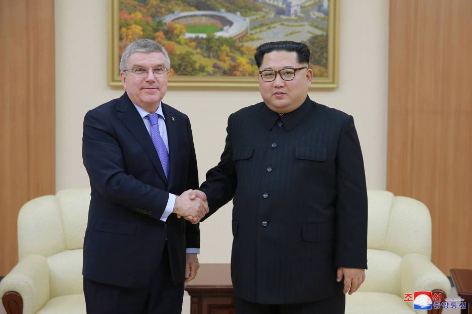 No dia 31 de março de 2018, Kim Jong Un, líder da República Popular Democrática da Coreia, recebeu Thomas Bach, presidente do Comitê Olímpico Internacional (COI) e sua comitiva.