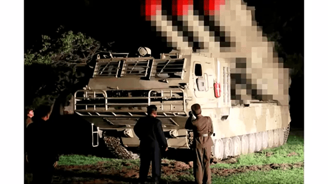 Quando ele deu a ordem de fogo, foram lançados os poderosos projéteis de tipo Juche.