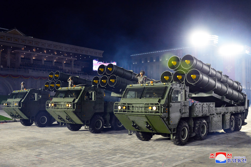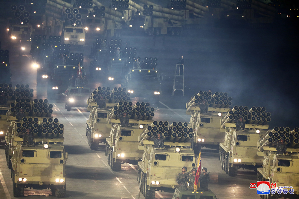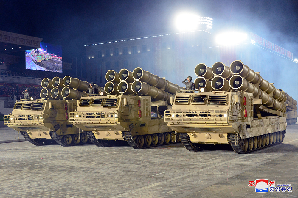 Uma das novidades a serem apresentadas no desfile foram as artilharias reativas. Elas na verdade já foram testadas em 2019, mas é a primeira vez que aparecem em um desfile militar. Não sabemos exatamente os seus nomes, mas são constantemente chamadas pela mídia norte-coreana de “sistemas de artilharia reativa de calibre super-gigante”.