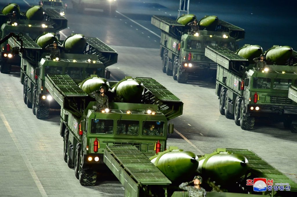 O pai de todas as novidades também foi o último equipamento a entrar na Praça Kim Il Sung durante o desfile: os novos mísseis balísticos intercontinentais, provavelmente chamados de “Hwasong-16”. Bastante semelhantes ao seu antecessor, o Hwasong-15 (que também desfilou), o novo tipo 16 tem capacidade de carga muito maior, o que abre a possibilidade de o novo míssil suportar várias ogivas em sua carga, o que representaria um salto técnico incrível para a RPDC.