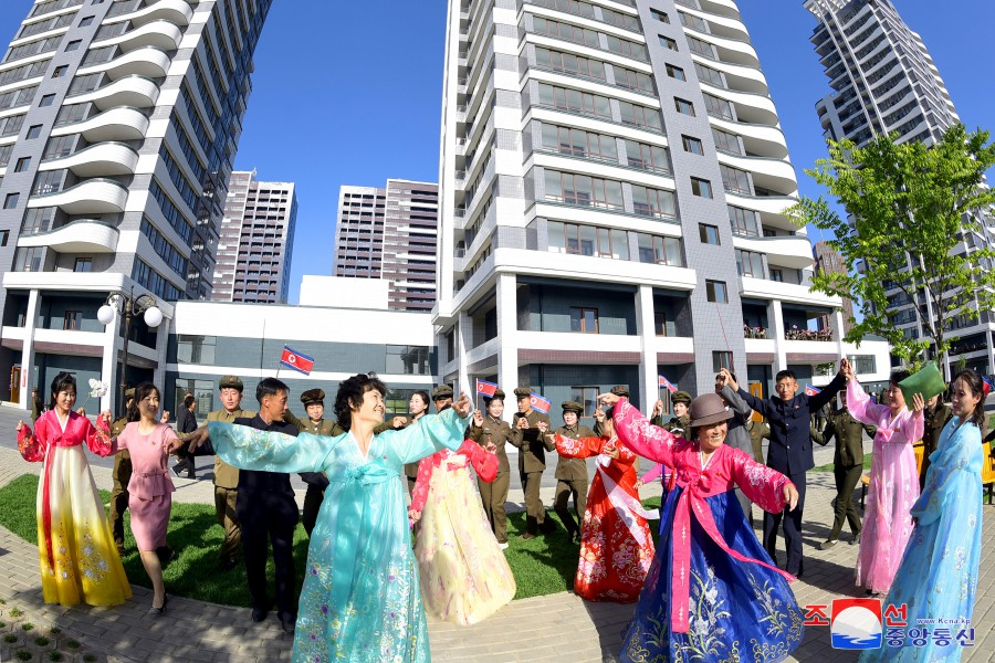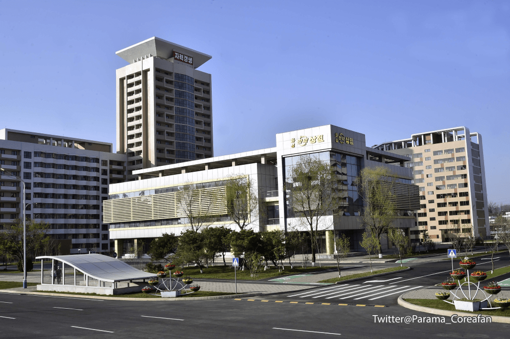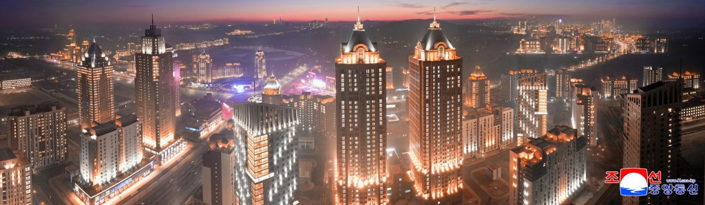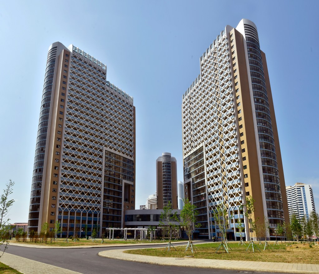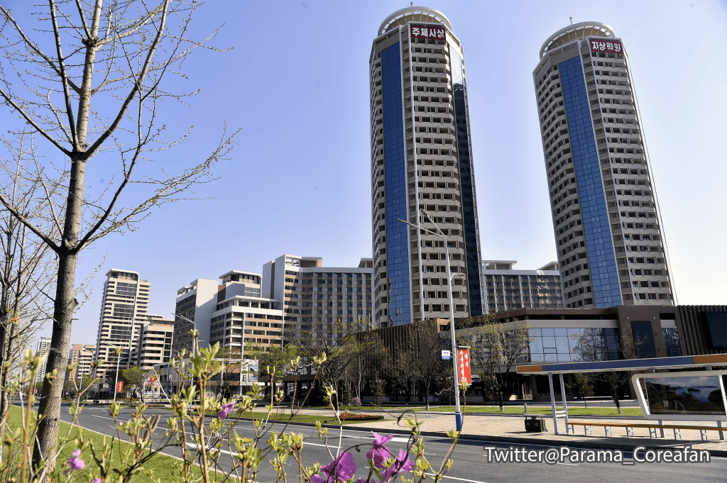 - Bairro Kyongru (Abril de 2022): Localizado no coração da cidade, este conjunto residencial de luxo também chamado de “distrito residencial de casas geminadas às margens do rio Pothong” foi um presente especial para 800 famílias de beneméritos, inovadores e cientistas. A decisão de construir moradias de alto padrão no local da antiga residência do grande Líder Kim Il Sung demonstra a filosofia de colocar o povo em primeiro lugar, apresentada pelo Secretário-Geral.