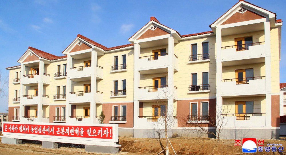O Artigo 69 da Lei Socialista do Trabalho estipula que “O Estado constrói casas modernas em áreas rurais às custas do Estado para que os trabalhadores rurais possam usá-las gratuitamente”. Da mesma forma, a Lei de Construção da RPDC determina que o Estado deve construir moradias urbanas e rurais modernas às suas expensas.