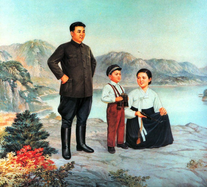 A família revolucionária do Monte Paektu: a camarada Kim Jong Suk junto aos camaradas Kim Il Sung e Kim Jong Il.